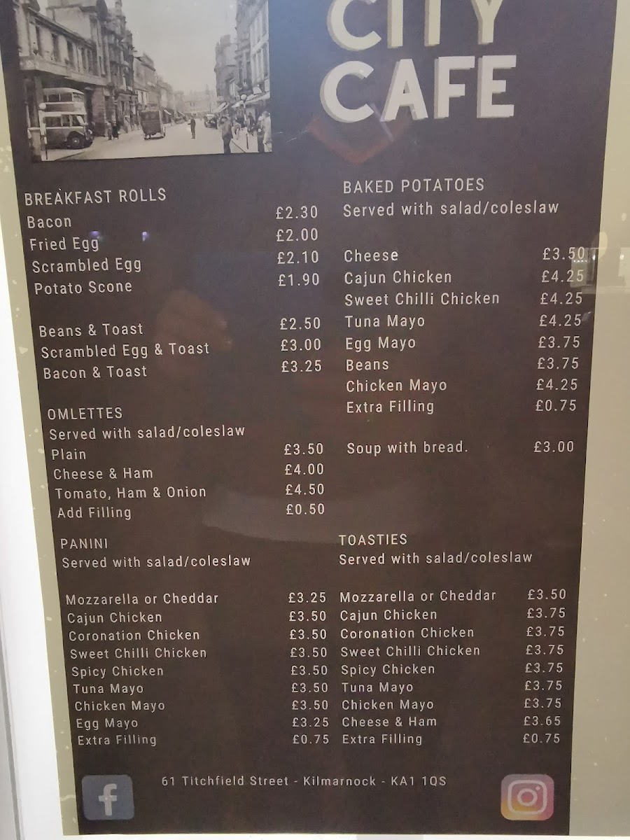 Welcome to Cafe City, a delightful café nestled in the heart of Kilmarnock at 61 Titchfield St. Here, breakfast is an experience rather than just a meal. Start your day with their hearty Bacon, Egg, and Tattie Scone for just £6.50 or grab a quick Bacon Roll at £2.70. For omelette lovers, choices abound—from a classic Cheese Omelette to a robust Bacon, Onion, Tomato & Mushroom blend, all served with a fresh side of salad or coleslaw.