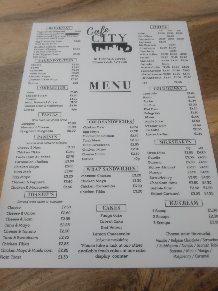 Cafe city Menu